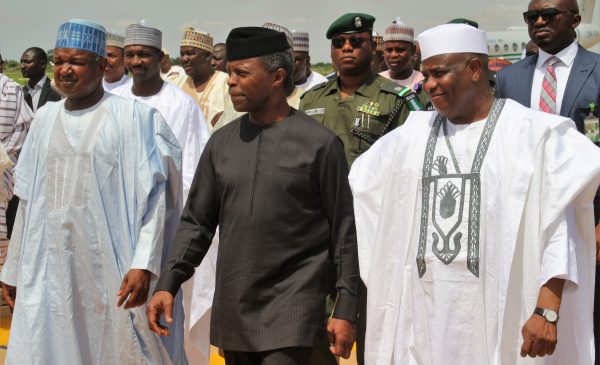 Acting President, Professor Yemi Osinbajo arrived Sokoto Airport on his way to Zamfara for a one day working visit. He was received at the Sultan Abubakar III International Airport by Governor Aminu Waziri Tambuwal and his Kebbi State counterpart Abubakar Atiku Bagudu.