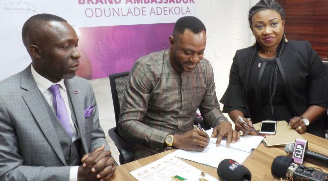 The newly unveiled RevolutionPlus Brand Ambassador, Odunlade Adekola while speaking, after formally signing an agreement with the company, said he was attracted to the company because of their vision to make Nigerians irrespective of their economic status own landed properties and he will ensure he promotes the company and help them to reach their targets.